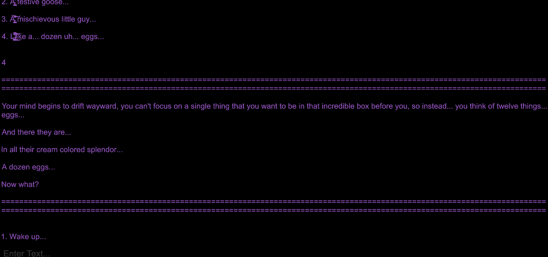Xynith: The Lost Temple of Eternal Night is a text-based dungeon crawl adventure in an unfinished state. You are free to play it though you may find missing assets, bugs, and more fun things.